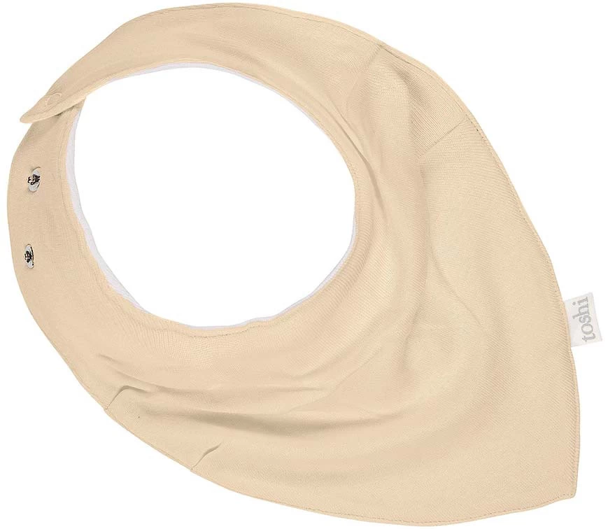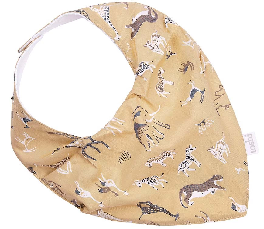 The Toshi Baby Bandana Story offers two complimentary bandanas of the finest quality 100% cotton. The original and exclusive Wild Tribe design is featured. Presented harmoniously with this is the Dreamtime certified 100% organic cotton bandana in an Almond colour, a natural and earthy gender-neutral hue. The bandanas have absorbent cotton padding on the reverse for moisture protection. Conveniently located press studs create adjustable sizing. Toshi bandanas are functional, versatile and gentle on delicate skin. Bon appetit!
