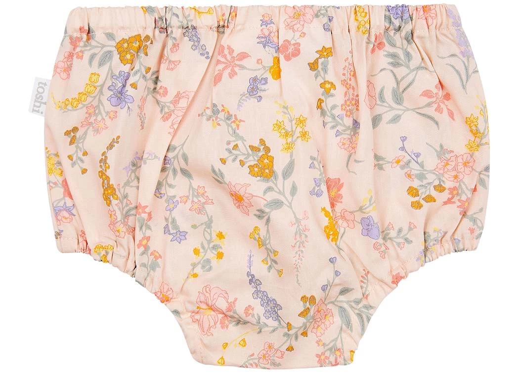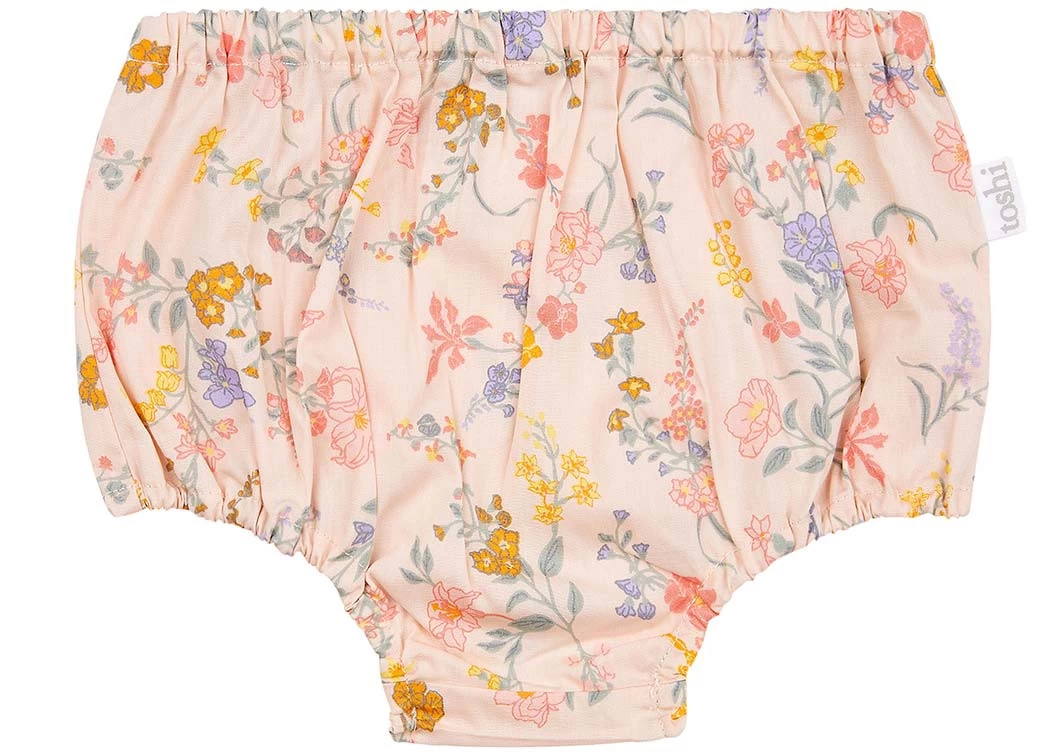 Toshi Baby Bloomers are crafted from the finest quality 100% cotton. Our bloomers are designed for comfort and mobility during little adventures and moments of vigorous play. The elasticised waist offers ease of dressing and convenient nappy changes. Baby Bloomers Isabelle Blush presents in an original and exclusive Toshi design, featuring delicately hand illustrated fresh spring blossoms in a soft pink hue.