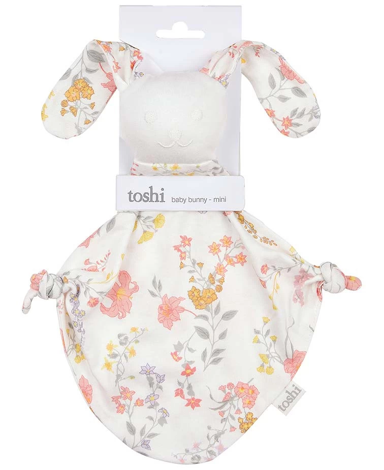 Toshi Bunny Mini is an ideal sleep comforter and daytime playmate. The lightweight feel makes bunny a suitable companion for indoor and outdoor adventures. Made from the finest quality 100% cotton, bunny is gentle and soothing to hold. Bunny Mini Isabelle presents in an original and exclusive Toshi design, featuring delicately hand illustrated fresh spring blossoms.