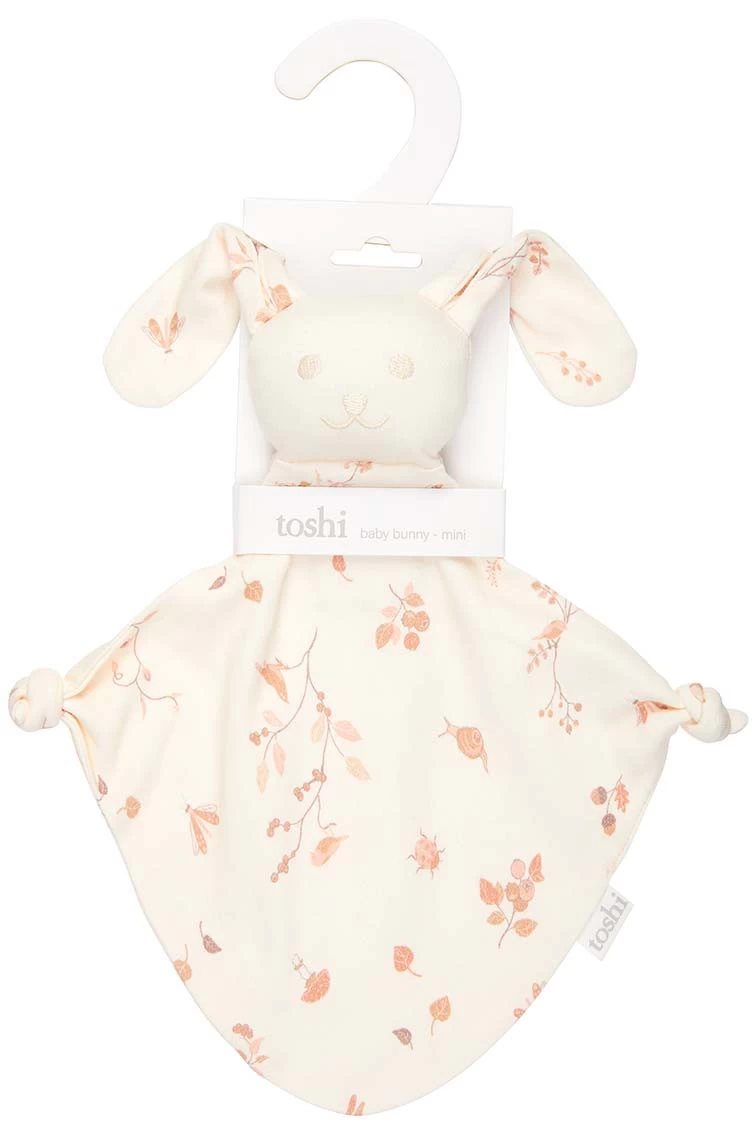 Toshi Bunny Mini is an ideal sleep comforter and daytime playmate. The lightweight feel makes bunny a suitable companion for indoor and outdoor adventures. Made from the finest quality 100% cotton, bunny is gentle and soothing to hold. Bunny Mini has a height of 35cm.