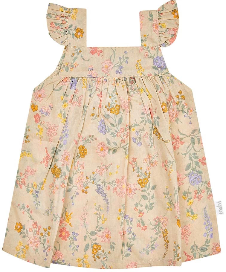 Toshi Baby Dress Isabelle is a delightful baby outfit. The dress is crafted from the finest quality 100% cotton. The a-line shape is flattering and functional, creating plenty of freedom and space for movement. A smocked back panel offers adjustable sizing and convenient dressing. Toshi Baby Dress Isabelle is ideal for casual play and smart social occasions. Baby Dress Isabelle Almond presents in an original and exclusive Toshi design, featuring delicately hand illustrated fresh spring blossoms in an earthy hue.