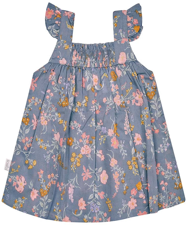 Toshi Baby Dress Isabelle is a delightful baby outfit. The dress is crafted from the finest quality 100% cotton. The a-line shape is flattering and functional, creating plenty of freedom and space for movement. A smocked back panel offers adjustable sizing and convenient dressing. Toshi Baby Dress Isabelle is ideal for casual play and smart social occasions. Baby Dress Isabelle Moonlight presents in an original and exclusive Toshi design, featuring delicately hand illustrated fresh spring blossoms in a classic and timeless French navy hue.