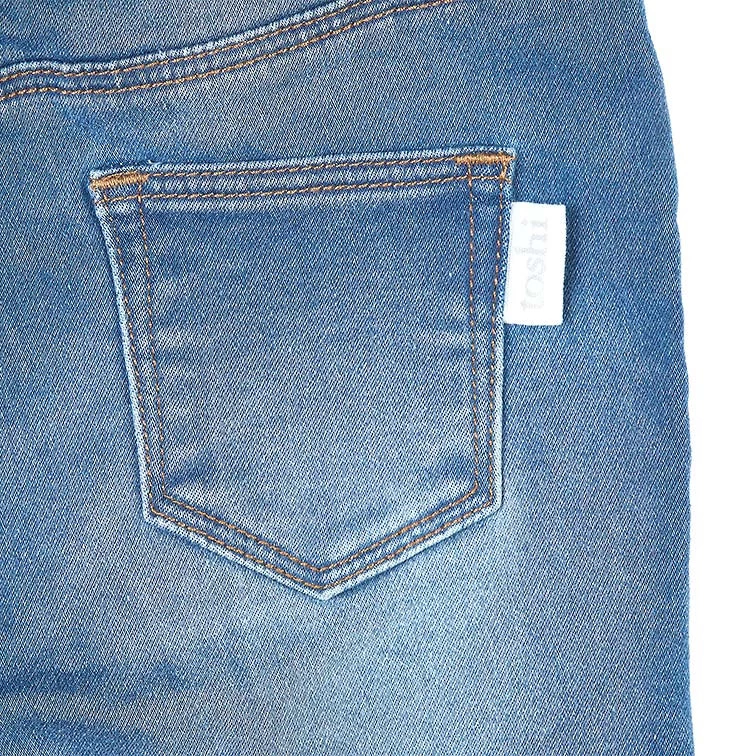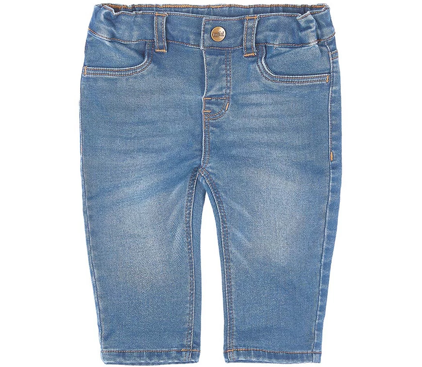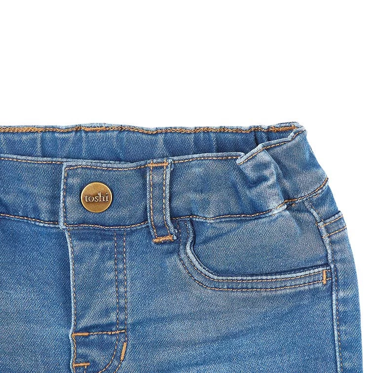 Toshi presents quality Baby Jeans in a dark artisan washed denim. Cotton blend stretch denim facilitates movement & optimum baby comfort. The fit is a regular leg with a touch of slouch for greater baby street cred! An elasticised waist with buttons creates adjustable sizing. The back pockets are functioning and embellished with a subtle Toshi label. Signature Toshi branding also appears on a metal press stud. Toshi Baby Jeans are a stylish gender neutral, trans-seasonal wardrobe essential.