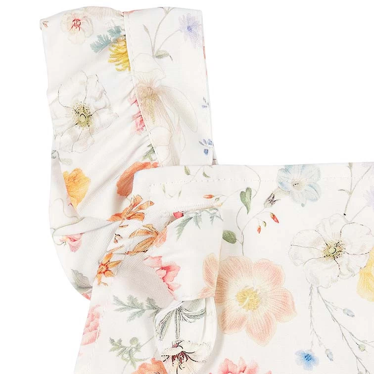 The Toshi Baby Romper is reminiscent of bygone days and is the perfect look for a fun summer occasion. Flattering frills create a pretty, feminine style and the open back is light and playful. The romper has shoulder ties for adjustable sizing and convenient dressing. Elasticised waistband and leg openings offer greater flexibility for a snug fit. Press studs create convenient nappy changes. Romper Secret Garden Lilly features a delicate abundance of sweetly curated field flowers.