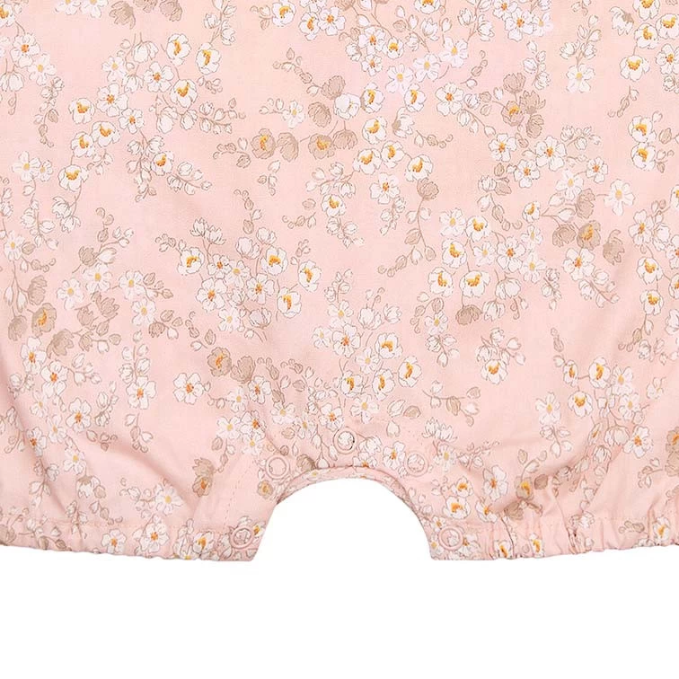 The Toshi Baby Romper is reminiscent of bygone days and is the perfect look for an endless summer. With a loose, casual fit, the romper is ideal for relaxed play. The Toshi Romper has shoulder ties for adjustable sizing and convenient dressing. Press studs create convenient nappy changes. Baby Romper Stephanie Blush presents in an original and exclusive Toshi design, featuring delicate and finely illustrated blossoms in a soft pink hue.