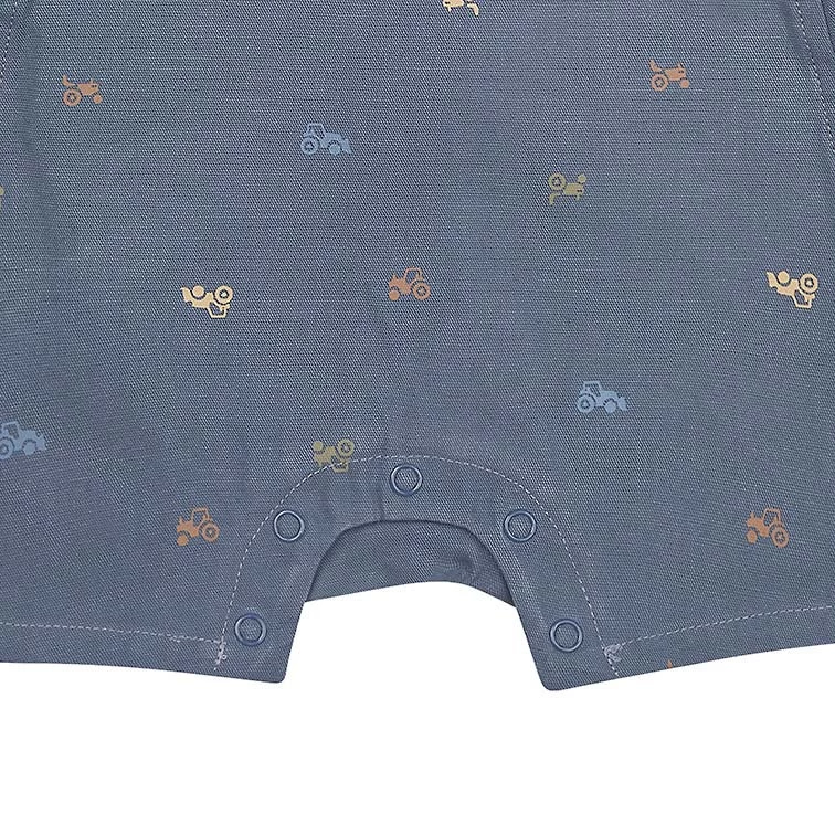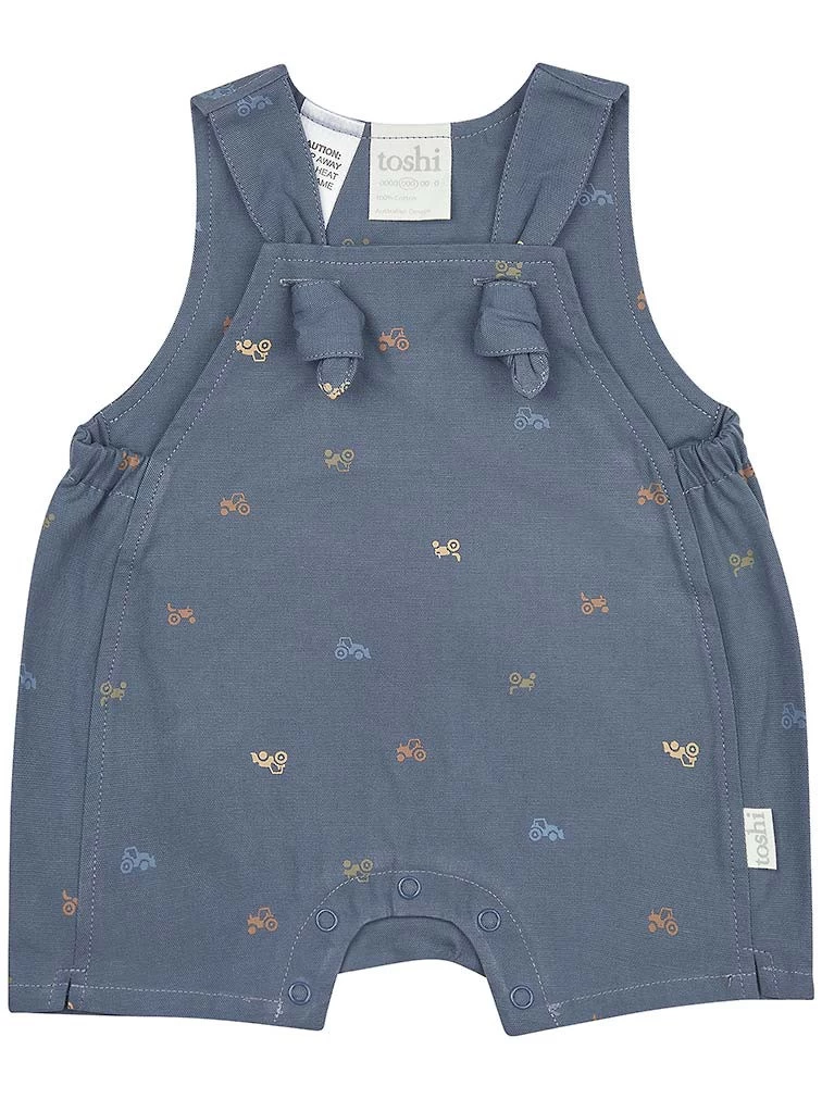 The Toshi Baby Romper is reminiscent of bygone days and is the perfect look for an endless summer. With a loose, casual fit, the romper is ideal for relaxed play. The Toshi romper has shoulder ties for adjustable sizing and convenient dressing. Press studs create convenient nappy changes. This Romper Tractor presents in an original and exclusive Toshi design, featuring farmyard tractors in a classic and timeless navy blue hue.