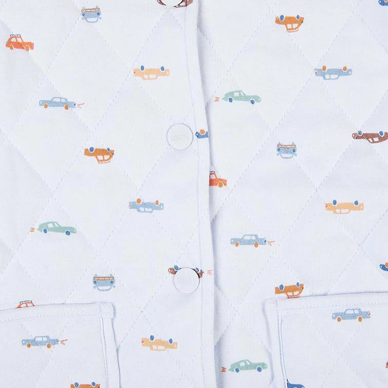 Baby Shacket Classic Roadsters is offered in an original and exclusive Toshi print design and features performance vehicles in all shapes and sizes.