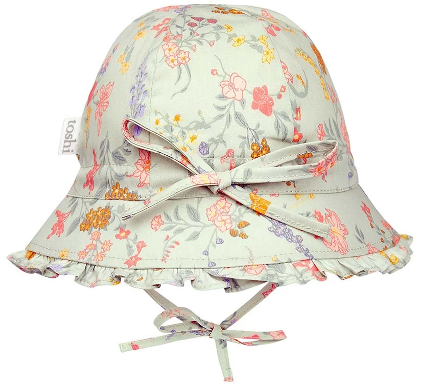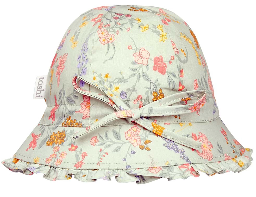 Bell hat Isabelle Sage presents in an original and exclusive Toshi design, featuring delicately hand illustrated fresh spring blossoms in a soft green hue.