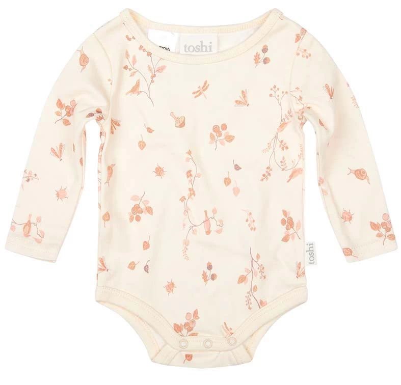 Toshi Bodysuit Long Sleeve Classic Songbirds is offered in an original and exclusive print design and features autumn leaves and love birds.