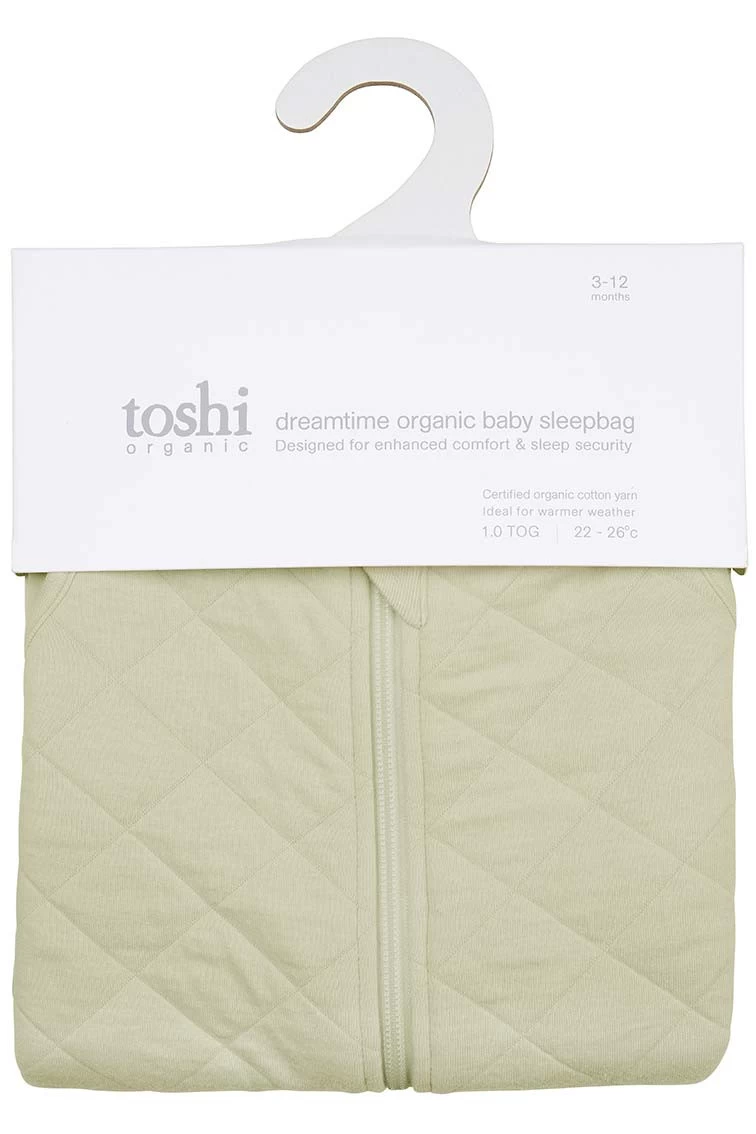 Gentle on delicate baby skin and our precious environment, the Toshi Baby Sleep Bag is designed for enhanced comfort & sleep security. The 1.0 TOG thermal rating, makes the Toshi Sleep Bag ideal for warm weather 22 – 26°. With a quilted jersey fabric on the outer for warmth and comfort, the Sleep Bag is also fully lined. The design incorporates a bell shaped bottom for movement and development of baby hips and legs. A two-way zip offers ease of nappy change and the zip is covered for enhanced comfort & security. Arm-out sleeping for warmer climates is accommodated. The seat belt opening facilitates ease of transfer from the pram to the sleep space and a more carefree travel experience. This Toshi Sleep Bag is Thyme, a nature inspired gender-neutral hue.