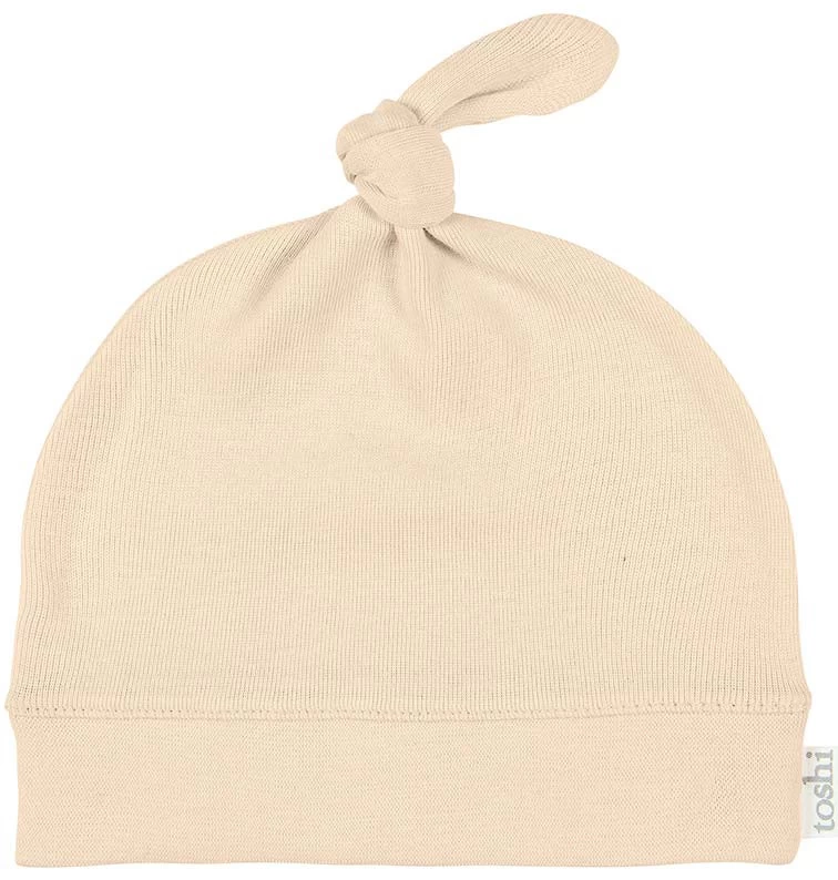 The Toshi Organic Baby Beanie Dreamtime is crafted from the finest quality, certified 100% organic cotton yarn. The organic beanie is as gentle on your baby’s delicate skin as it is on the environment. Brought to life in a beautifully textured knit, our Dreamtime Beanie will keep your precious little baby warm and protected during cooler moments. A head knot creates adjustable sizing for the height of the beanie. This beanie colour is Almond, a natural and earthy gender-neutral hue. The Dreamtime Beanie is functional, gentle on delicate skin and offers baby protection from the elements.
