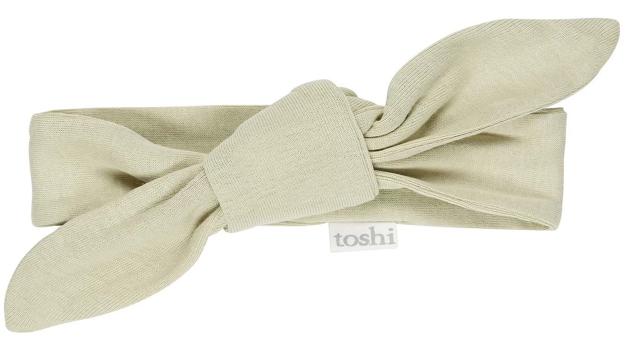 Toshi Dreamtime Headbands are designed for the adornment of precious babies. The Toshi headband is crafted from the finest quality certified 100% organic cotton yarn and is soft and gentle on delicate babies. This newborn baby accessory is created from a beautifully textured knit. A deliciously harmonious colour palette forms the unique headband collection. This headband colour is Thyme, a nature inspired gender-neutral hue. The Toshi baby hair accessory features flexible sizing and suits newborn to toddler.