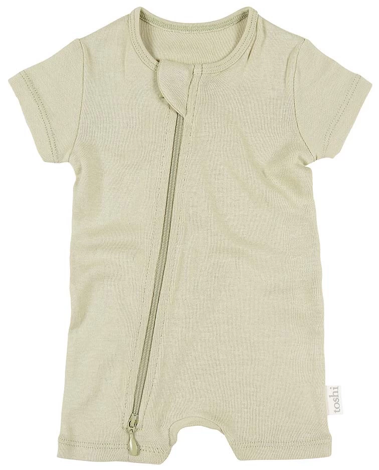 The Toshi Dreamtime Onesie Short Sleeve is created for the ultimate in baby lifestyle comfort and functionality. Crafted from the finest quality certified 100% organic cotton yarn, the baby onesie is soft and gentle on delicate skin, as well as our precious environment. The beautifully textured knit brings an element of refinement to this baby onesie. Toshi Dreamtime Onesie features a front opening, two-way zip ensures convenient dressing. The subtle zip design also offers comfort throughout the day, whether your baby is sleeping or ready to play. This onesie colour is Thyme, a nature inspired gender neutral hue.