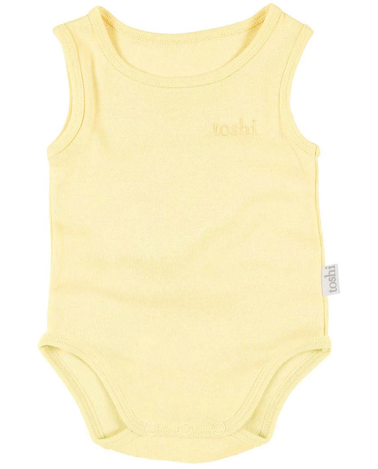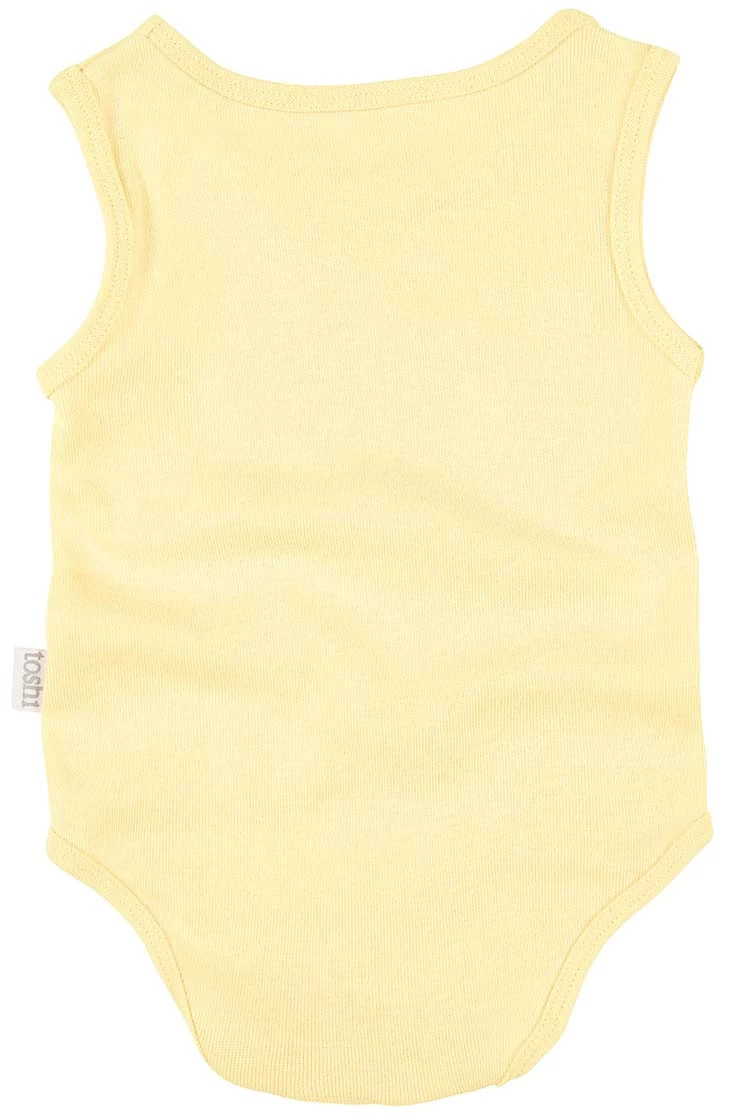The Toshi Dreamtime Organic Onesie Singlet is created for the ultimate in baby lifestyle comfort and functionality. Crafted from the finest quality certified 100% organic cotton yarn, the Onesie Singlet is soft and gentle on delicate skin, as well as our precious environment. The beautifully textured knit brings an element of refinement to this baby onesie. Toshi Dreamtime Onesie Singlet features bottom opening press studs for ease of nappy change. The Onesie Singlet is ideal for layering and is an essential piece for a well-considered baby wardrobe. This Onesie Singlet colour is Buttercup, a spring inspired gender-neutral yellow hue of the moment.