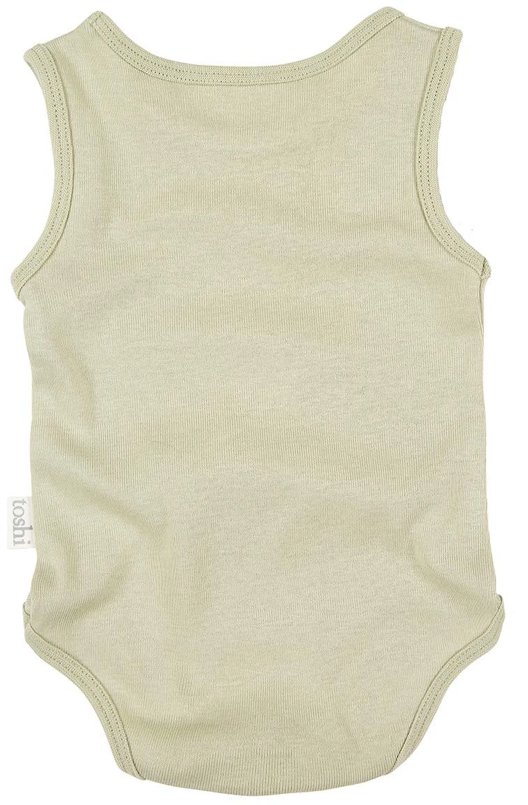 The Toshi Dreamtime Organic Onesie Singlet is created for the ultimate in baby lifestyle comfort and functionality. Crafted from the finest quality certified 100% organic cotton yarn, the Onesie Singlet is soft and gentle on delicate skin, as well as our precious environment. The beautifully textured knit brings an element of refinement to this baby Onesie Singlet. Toshi Dreamtime Onesie Singlet features bottom opening press studs for ease of nappy change. The Onesie Singlet is ideal for layering and is an essential piece for a well-considered baby wardrobe. This Onesie Singlet colour is Thyme, a nature inspired gender neutral hue.