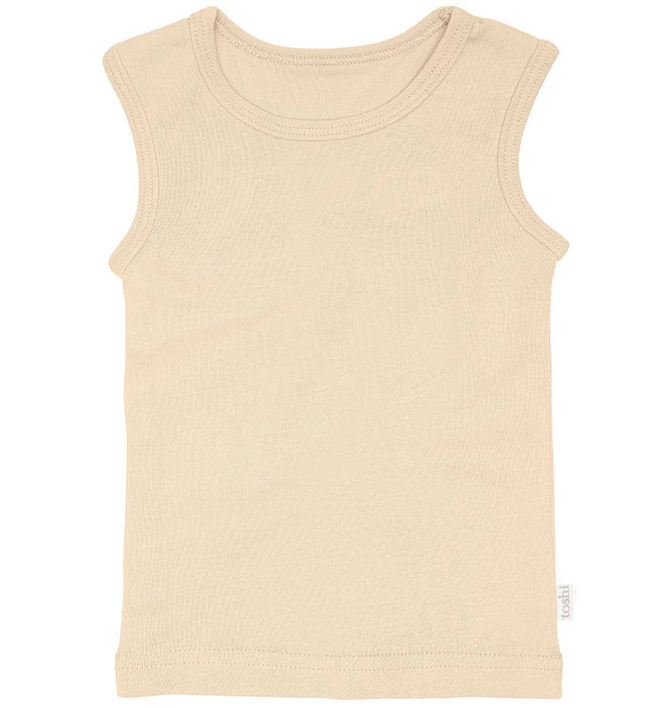 Toshi Dreamtime Organic Singlet is designed for optimum comfort during little adventures and big sleeps. Crafted from quality certified 100% organic yarn, the singlet supports freedom of movement and is an ideal baby layering garment. Our Singlet is soft and gentle on delicate skin, as well as our precious environment. The beautifully textured knit introduces an element of refinement to this singlet. The singlet colour is Almond, a natural and earthy gender-neutral hue.