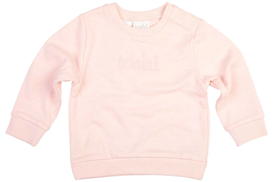 The Organic Sweater and Tracksuit collection features a subtly textured marle colour palette and the colour of this sweater is Pearl, a pretty pink hue.