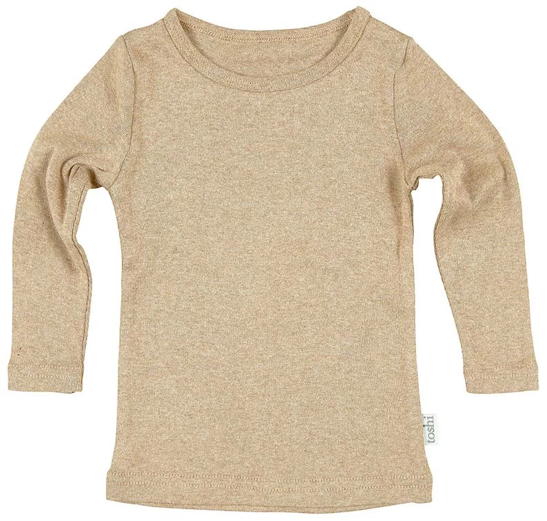 The Toshi Long Sleeve Tee is designed for optimum comfort during little adventures and big sleeps. Crafted from the finest quality certified 100% organic cotton yarn, the Toshi Long Sleeve Tee is soft and gentle on delicate skin, as well as our precious environment. A beautifully-textured melange knit brings an element of refinement to this baby T-shirt. The colour of the tee is Camel, a natural and earthy gender-neutral hue. The interlock fabric facilitates freedom of movement and creates an essential baby layering garment. With long sleeves your baby will feel cosy and nurtured in the cooler months.