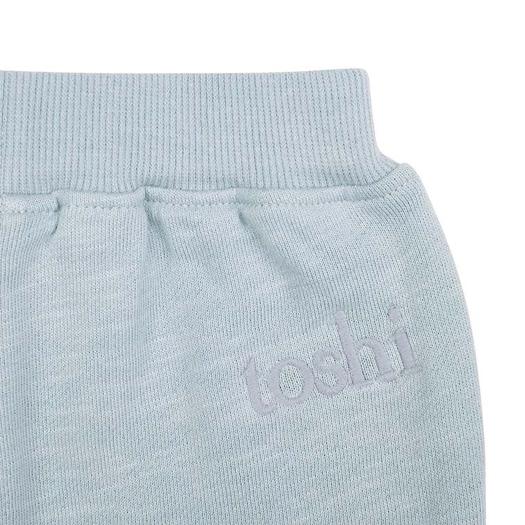 The Toshi Dreamtime Organic Sweater and Trackpants collection is designed for the ultimate in baby comfort. The collection is crafted from the finest quality certified 100% organic cotton yarn. Made of a quality terry, the fabric is a versatile knit with soft loops on the inside and a smooth surface on the outside. The Trackpants are embellished with a quality embroidered Toshi logo. An elasticised waist facilitates ease of dressing and adjustable sizing. With a relaxed and easy fit, Toshi Organic Trackpants are an ideal layering, trans-seasonal garment and baby will feel cosy and nurtured.