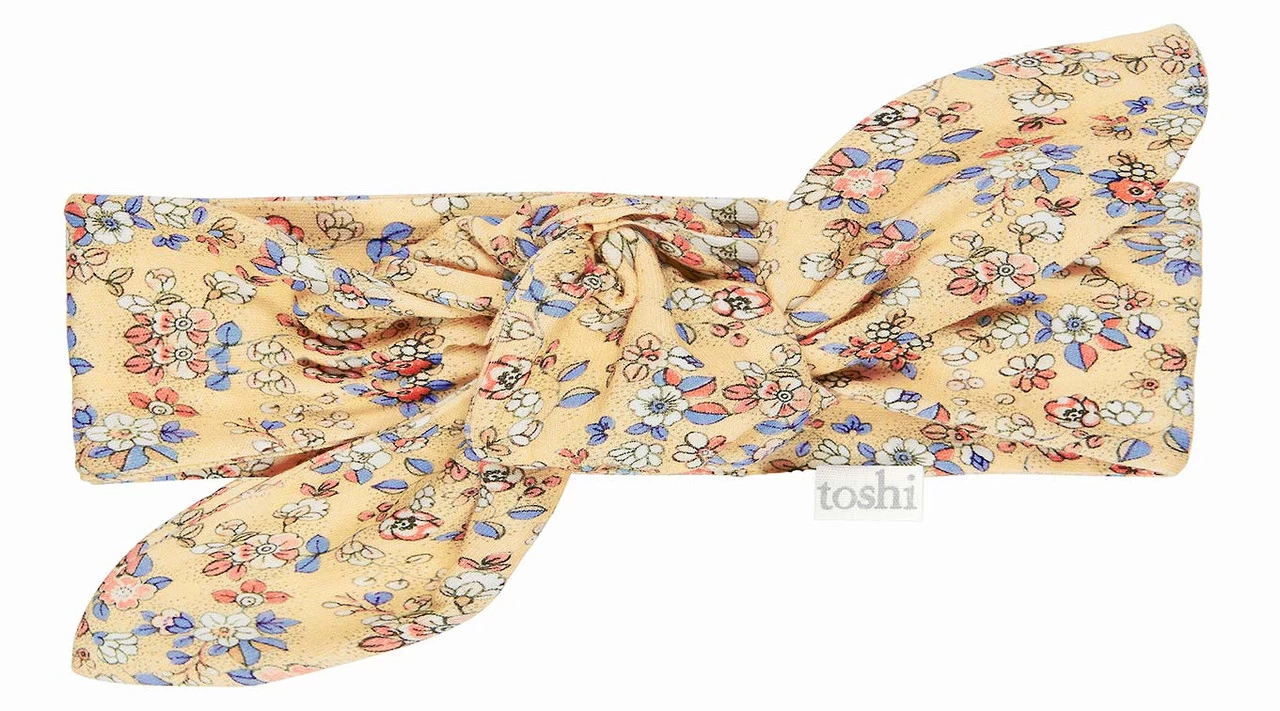 Toshi Baby Headbands are designed for the adornment of precious babies. Our baby hair accessories are created with flexible sizing and suit newborn babies to toddlers. The finest quality 100% cotton is soft and gentle on delicate babies. Headband Libby Sunny, a delicate and petite vintage inspired floral design in a spring yellow colourway. The Libby Sunny print is an original in-house Toshi design and is exclusive to Toshi.