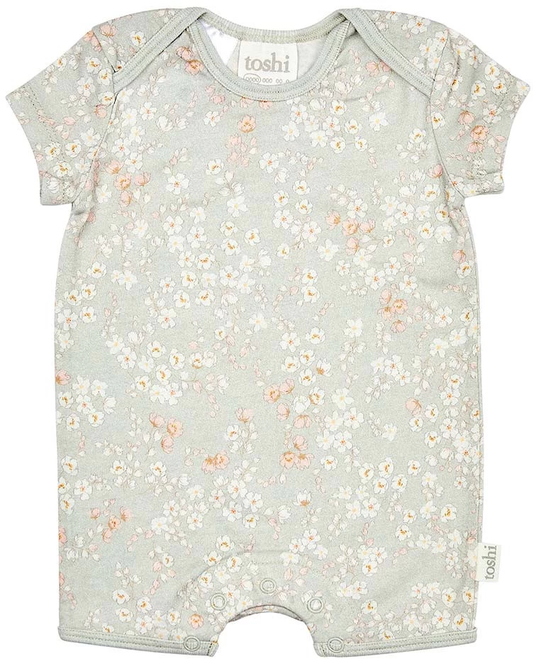 The Toshi Baby Onesie Classic is created for the ultimate in baby lifestyle comfort and functionality. Crafted from the finest quality 100% cotton, our onesie is soft and gentle on delicate baby skin. The envelope neckline ensures convenient dressing and press studs assist in smooth nappy changes. Baby Onesie Stephanie print presents in an original and exclusive Toshi design, featuring delicate and finely illustrated blossoms in a soft green hue.
