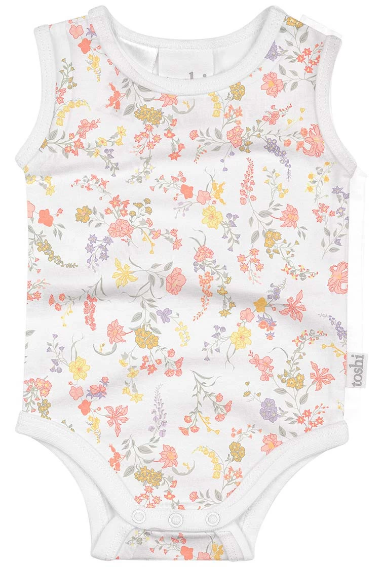 Onesie Singlet Isabelle presents in an original and exclusive Toshi design, featuring delicately hand illustrated fresh spring blossoms.