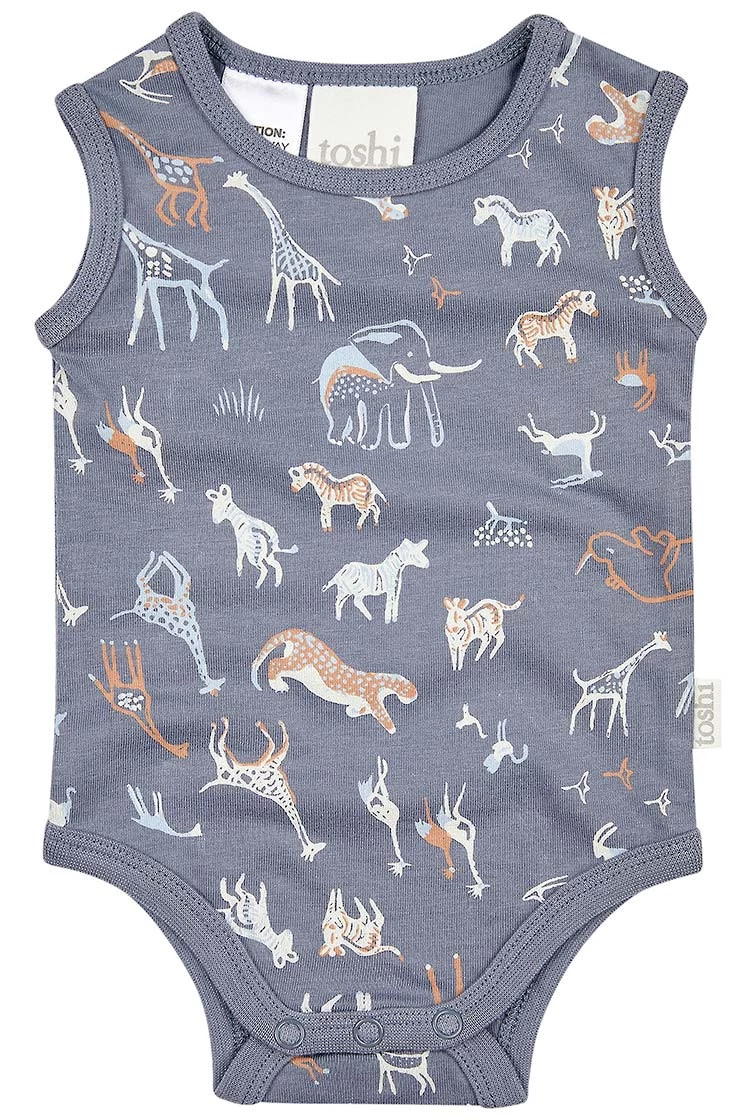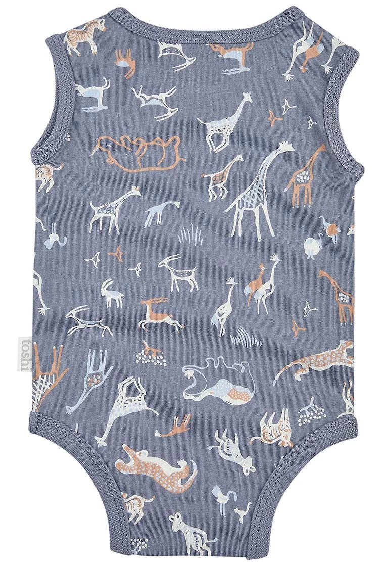 Onesie Singlet Wild Tribe presents in an original and exclusive Toshi design, featuring majestic safari animals in a classic navy hue.