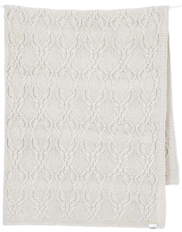 The sumptuously soft Toshi Organic Baby Blanket Bowie has a hand crafted feel and features a beautifully textured cable knit design. The finest quality certified 100% organic cotton yarn is as gentle on your baby’s delicate skin as it is on our precious environment. Melange yarn offers a level of refinement to this sophisticated Toshi baby accessory. The colour of this blanket is Pebble, a grey marle gender-neutral hue. The Toshi baby blanket measures 90 x 110cm.