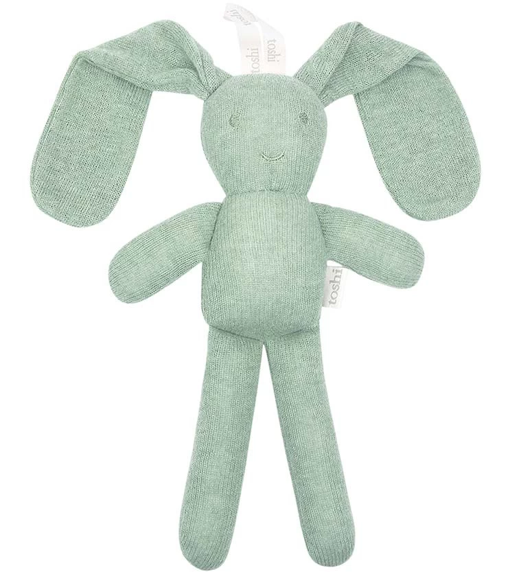 Toshi Bunny Andy is an ideal sleep comforter and daytime playmate. Bunny Andy is crafted from the finest quality certified 100% organic cotton yarn. The lightweight feel makes bunny a suitable companion for indoor and outdoor adventures. Bunny is beautifully textured, gentle and soothing to hold. The colour of this Bunny is Jade, a versatile and classic gender-neutral green hue.