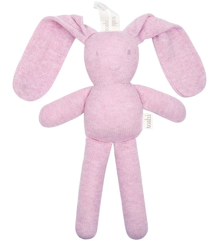 Toshi Bunny Andy is an ideal sleep comforter and daytime playmate. Bunny Andy is crafted from the finest quality certified 100% organic cotton yarn. The lightweight feel makes bunny a suitable companion for indoor and outdoor adventures. Bunny is beautifully textured, gentle and soothing to hold. The colour of this Bunny is Lavender, a deliciously pretty pastel hue of the moment.