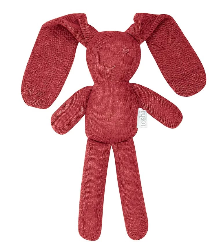 Toshi Bunny Andy is an ideal sleep comforter and daytime playmate. Bunny Andy is crafted from the finest quality certified 100% organic cotton yarn. The lightweight feel makes bunny a suitable companion for indoor and outdoor adventures. Bunny is beautifully textured, gentle and soothing to hold. The colour of this Bunny is Rosewood, a deep and warm gender-neutral hue of the moment.