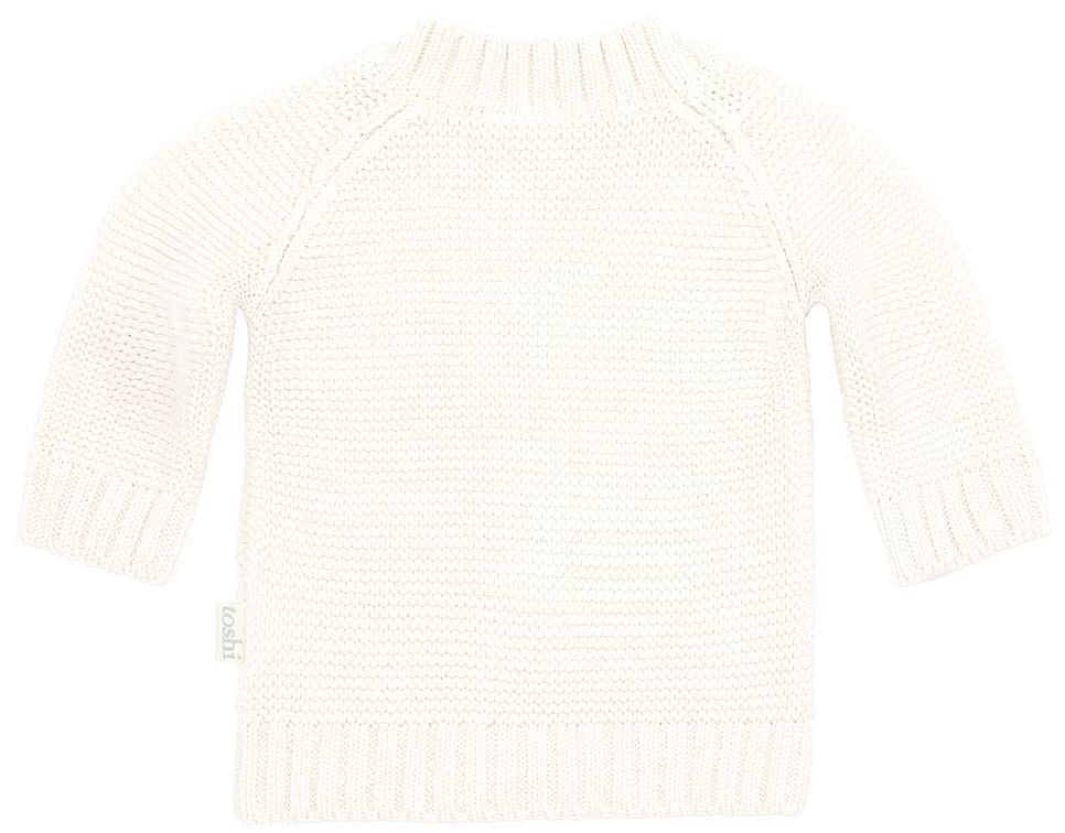 The sumptuously soft Toshi Organic Baby Cardigan Andy is crafted from the finest quality certified 100% organic cotton yarn. Organic certification ensures the cardigan is gentle on your delicate baby, as well as our precious environment. A melange yarn offers a level of refinement to this cosy and nurturing Toshi baby accessory. With a textured reverse knit and covered buttons, the styling is classic and yet the feel is contemporary. Cardigan Andy is designed to keep precious babies warm and cosy during our cooler months. The colour of this cardigan is Cream, a gender-neutral wardrobe essential.