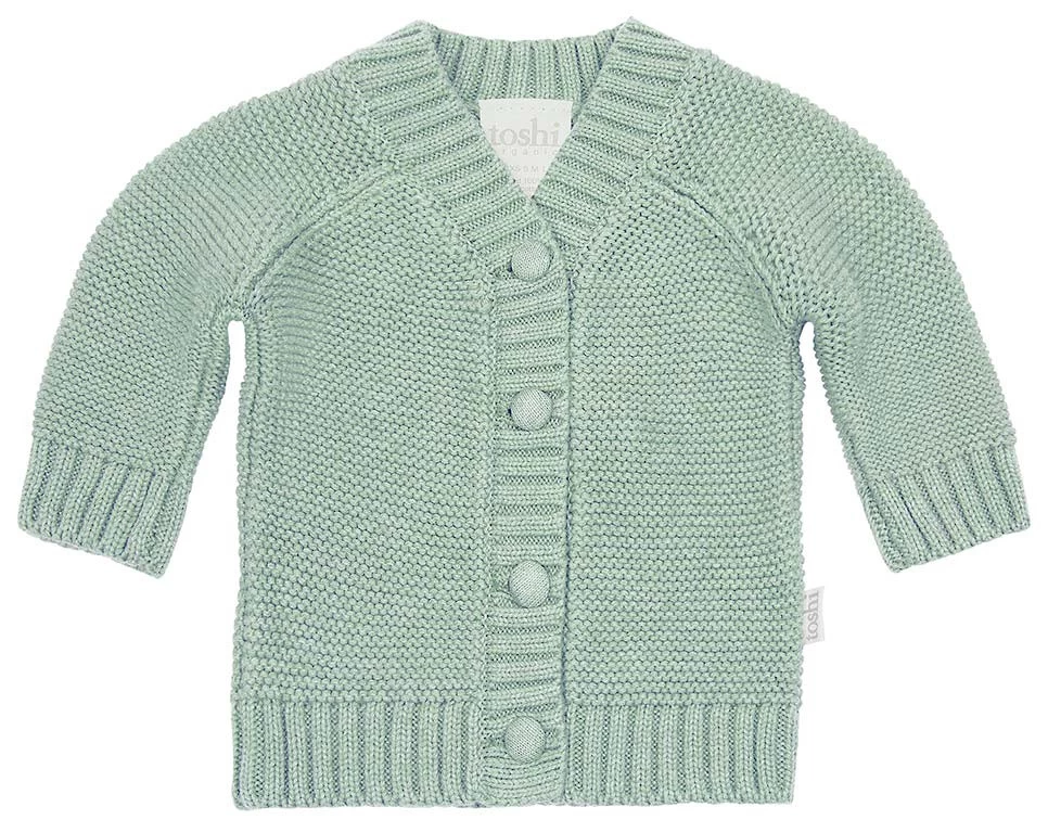 The sumptuously soft Toshi Organic Baby Cardigan Andy is crafted from the finest quality certified 100% organic cotton yarn. Organic certification ensures the cardigan is gentle on your delicate baby, as well as our precious environment. A melange yarn offers a level of refinement to this cosy and nurturing Toshi baby accessory. With a textured reverse knit and covered buttons, the styling is classic and yet the feel is contemporary. Cardigan Andy is designed to keep precious babies warm and cosy during our cooler months. The colour of this cardigan is Jade, a versatile and classic gender-neutral green hue.