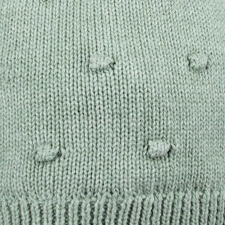 This beanie colour is Jade, a gentle green and gender-neutral hue.