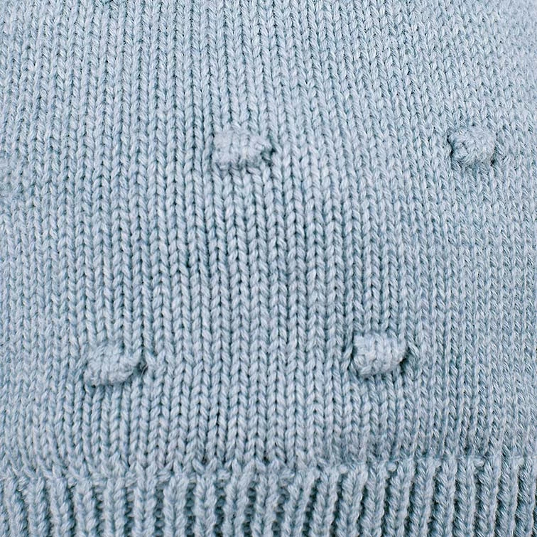 This beanie colour is Storm, a gender-neutral baby blue hue.