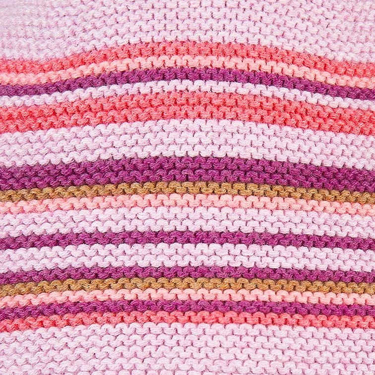 Toshi Earmuff Fantasy is crafted from the finest quality certified 100% organic cotton yarn. Organic certification ensures the beanie is gentle on heads, as well as our precious environment. The beautifully-textured melange yarn brings an element of refinement to this beanie. The Toshi baby beanie features ear flaps for cosy and nurturing protection from the elements. With stripes of a deliciously rich Lavender and Violet colour palette, the Toshi earmuff beanie accessorises vibrantly with a cosy winter wardrobe. Individually coloured pom poms adorn and create a touch of quirky self expression.