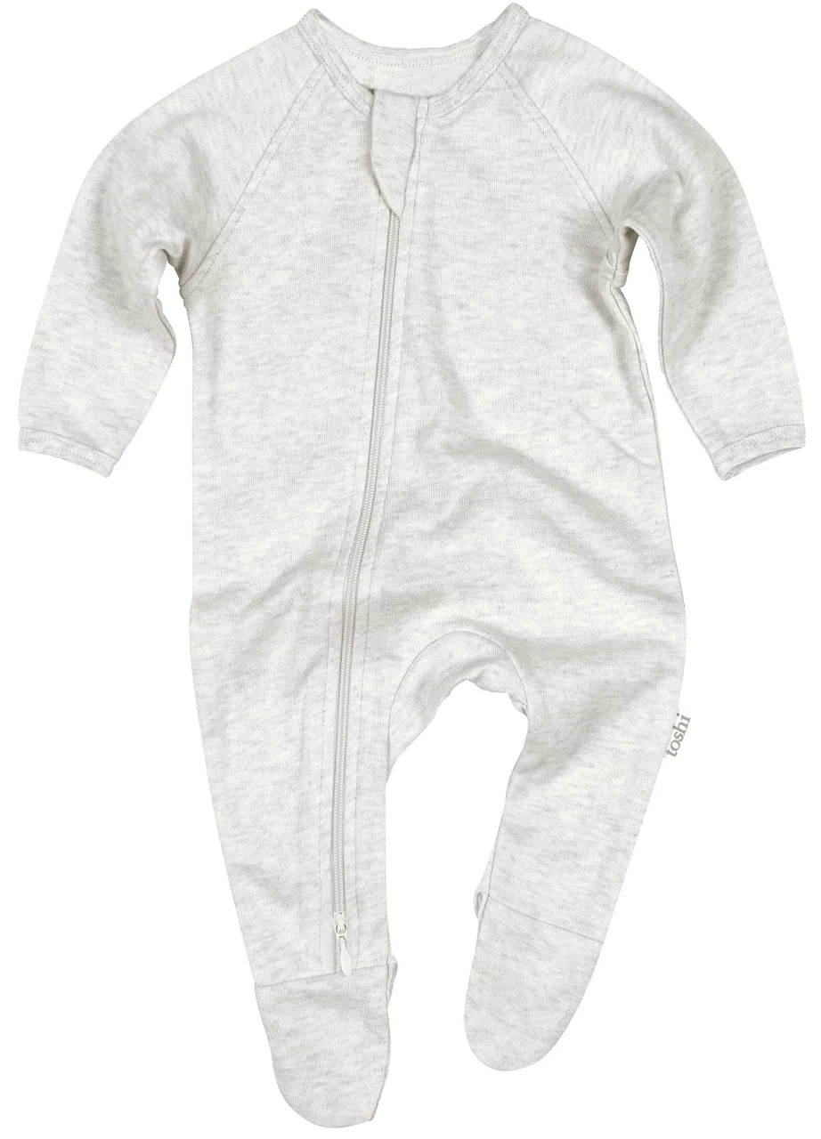 The Toshi Organic Dreamtime Onesie is created for the ultimate in baby lifestyle comfort and functionality. Crafted from the finest quality certified 100% organic cotton yarn, the baby onesie is soft and gentle on delicate skin, as well as our precious environment. The beautifully-textured melange yarn brings an element of refinement to this baby onesie. Toshi Dreamtime Onesie features a front opening two-way zip for ease of nappy change. The subtle zip design also offers comfort throughout the day, whether your baby is sleeping or ready to play. Long sleeves and covered feet, ensure your baby will feel cosy and nurtured during the cooler months. This onesie colour is Pebble, a grey marle gender-neutral hue.