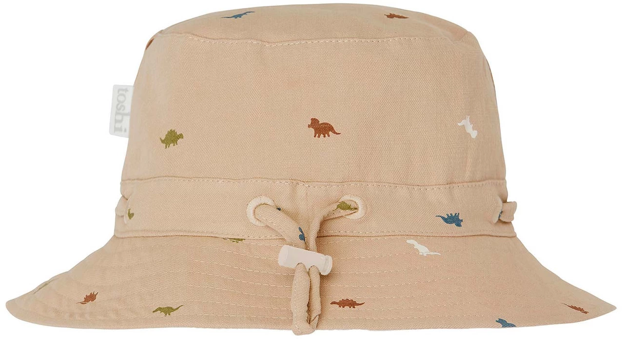 Toshi presents Sunhat Drifter, an ideal sunhat for children of all ages. The broad and well-structured brim offers increased sun protection. A head toggle creates adjustable sizing and the chin tie with toggle secures the hat and offers ease of wear. The security release clasp on the chin tie is designed to enhance wearer safety. Sunhat Drifter is crafted from the finest quality and high durability cotton and linen blend and is fully lined for additional comfort. Sunhat Drifter Jungle Giants features a homage to the dinosaurs of bygone eras in an earthy and rustic colour palette.