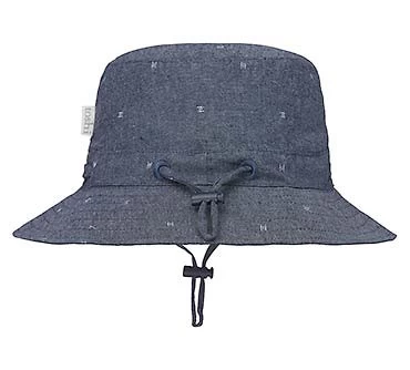 Toshi presents Sunhat Lawrence, a classic sunhat for children of all ages. The broad and well-structured brim offers increased sun protection. A head toggle creates adjustable sizing and the chin tie with toggle secures the hat and offers ease of wear. The security release clasp on the chin tie is designed to enhance wearer safety. Sunhat Lawrence is crafted from a highly durable, 100% cotton chambray fabric. The sunhat is fully lined for additional comfort. Sunhat Lawrence Midnight features a subtle textured print design in a French navy colourway.
