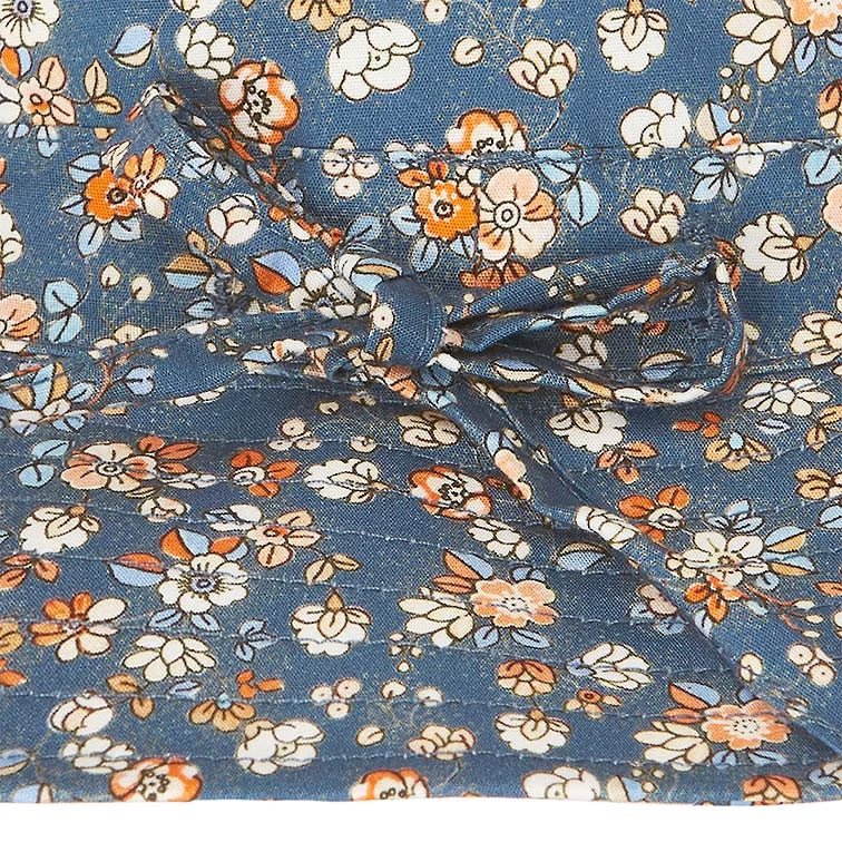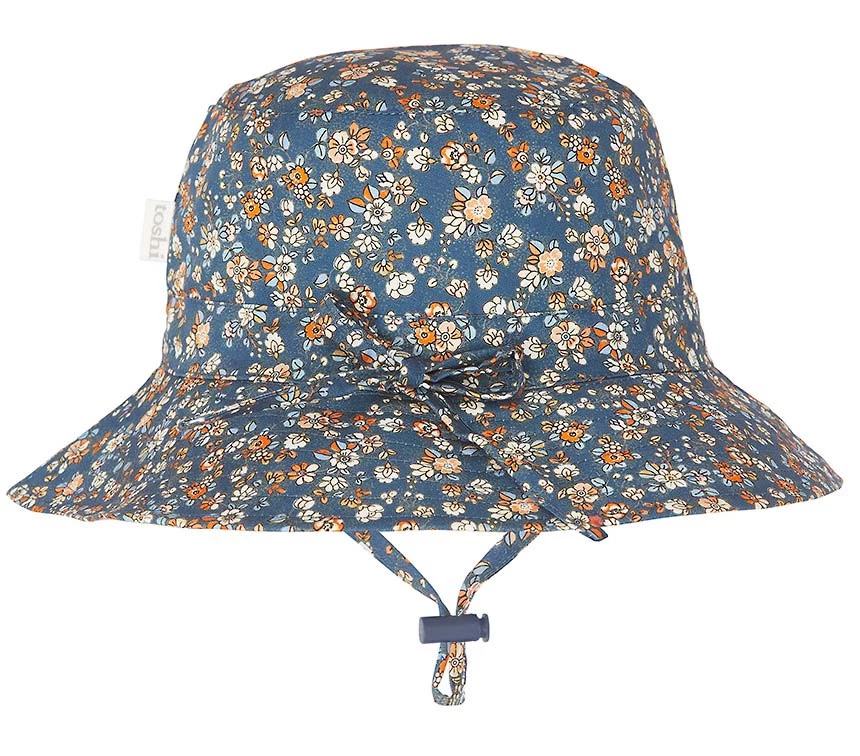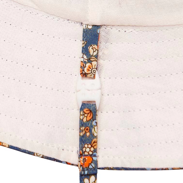 Toshi presents the classic Sunhat Libby, an ideal sunhat for children of all ages. The broad and well-structured brim offers increased sun protection. A head tie creates adjustable sizing and the chin tie with toggle secures the hat and offers ease of wear. The security release clasp on the chin tie is designed to enhance wearer safety. Sunhat Libby is crafted from the finest quality 100% cotton and is fully lined for additional comfort. Sunhat Libby Midnight features a delicate and petite vintage inspired floral design in a classic French navy colourway.