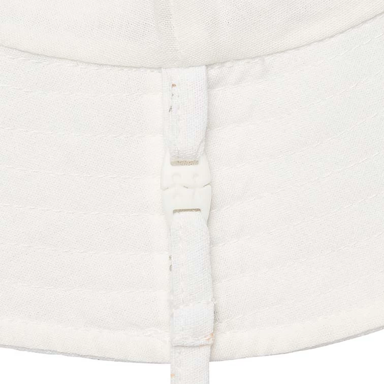 Toshi presents the classic Sunhat Milly, an ideal sunhat for children of all ages. The broad and well-structured brim offers increased sun protection. A head tie creates adjustable sizing and the chin tie with toggle secures the hat and offers ease of wear. The security release clasp on the chin tie is designed to enhance wearer safety. Sunhat Milly is crafted from the finest quality, textured 100% cotton and is fully lined for additional comfort. Sunhat Milly Lilly features a classically subtle floral design in a timeless cream hue.