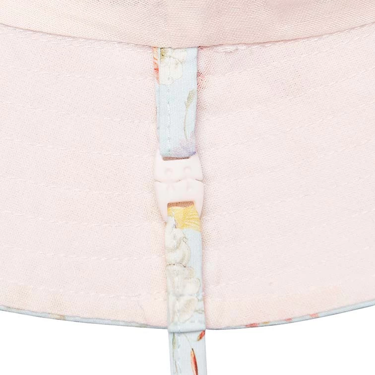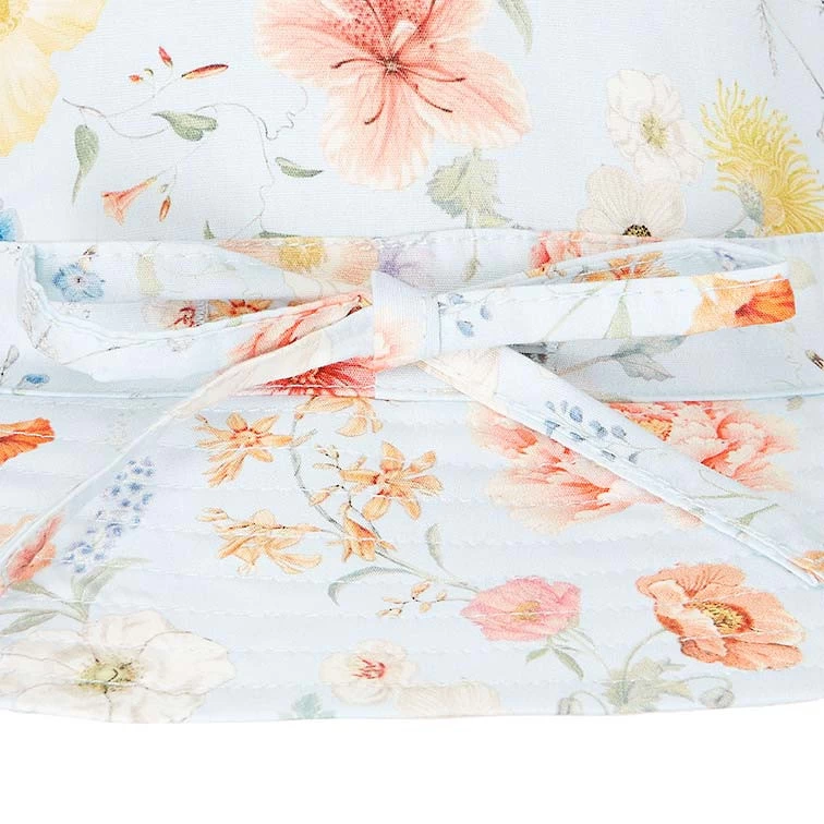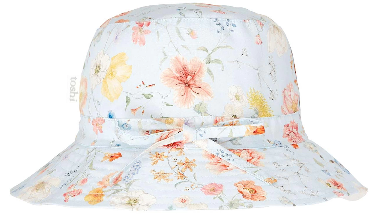 Toshi presents the classic Sunhat Secret Garden, an ideal sunhat for children of all ages. The broad and well-structured brim offers increased sun protection. A head tie creates adjustable sizing and the chin tie with toggle secures the hat and offers ease of wear. The security release clasp on the chin tie is designed to enhance wearer safety. Sunhat Secret Garden is crafted from the finest quality 100% cotton and is fully lined for additional comfort. Sunhat Secret Garden Sky features a delicate abundance of sweetly curated field flowers in a soft blue colourway.