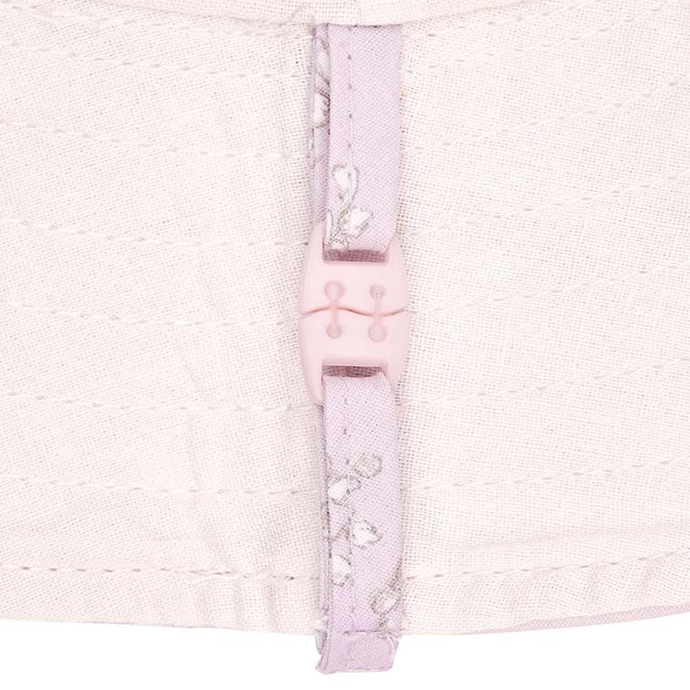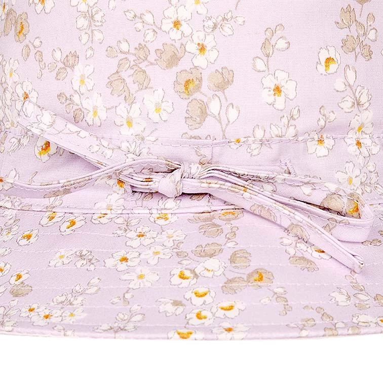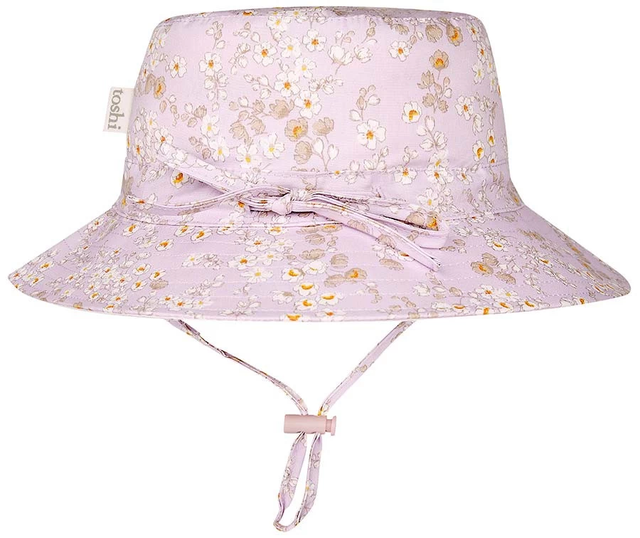 Toshi presents the classic Sunhat Stephanie, an ideal sunhat for children of all ages. The broad and well-structured brim offers increased sun protection. A head tie creates adjustable sizing and the chin tie with toggle secures the hat and offers ease of wear. The security release clasp on the chin tie is designed to enhance wearer safety. Sunhat Stephanie is crafted from the finest quality 100% cotton and is fully lined for additional comfort. Sunhat Stephanie Lavender presents in an original and exclusive Toshi design, featuring delicate and finely illustrated blossoms in a pretty lilac hue.