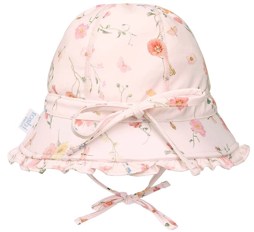 Toshi Swim Bell Hat Maya features an original and exclusive Toshi print design, a collection of sweet field flowers are presented in a delightfully pretty pink hue.