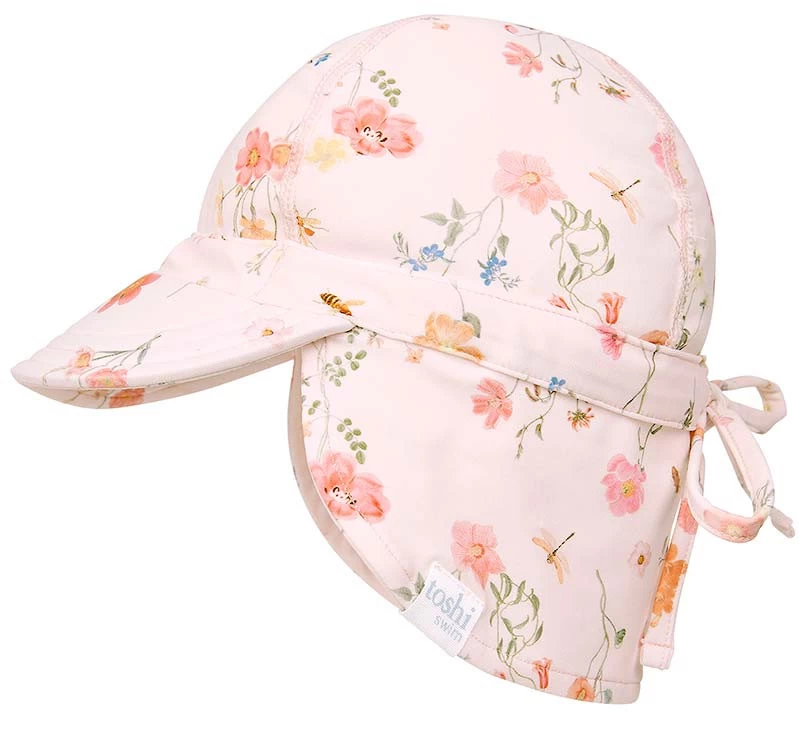 Toshi Swim Flap Cap Maya features an original and exclusive Toshi print design, a collection of sweet field flowers are presented in a delightfully pretty pink hue.