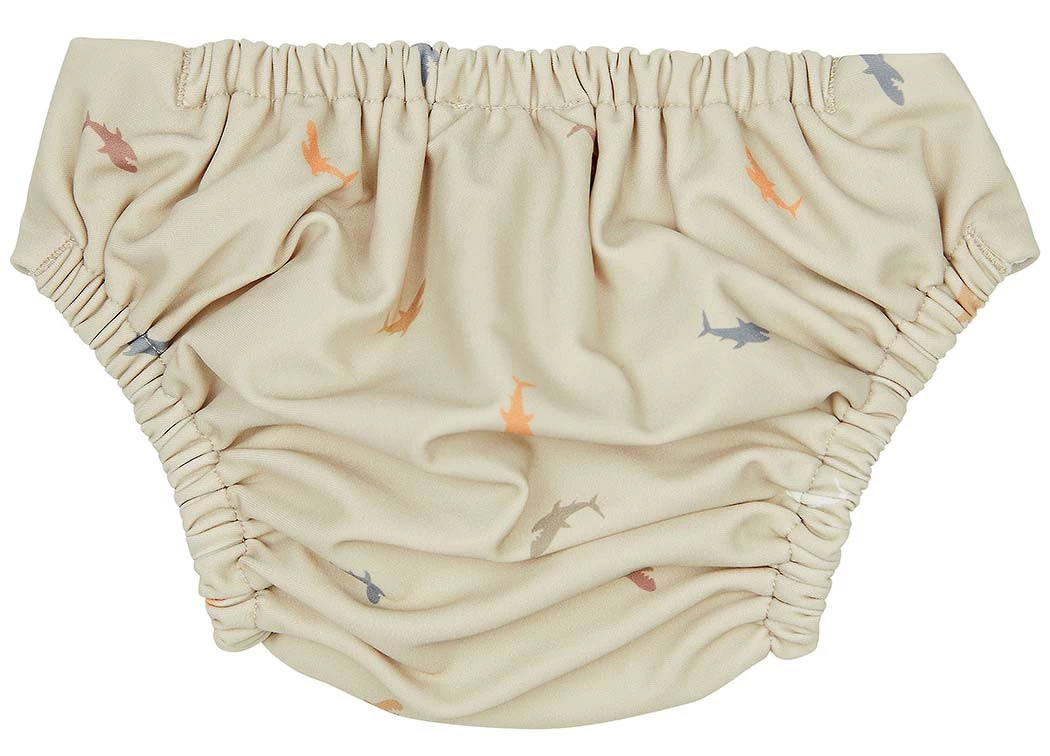 Swim Nappy Shark Tank features an original and exclusive Toshi print design, the big predators of the deep oceans are presented in a gender-neutral khaki hue.