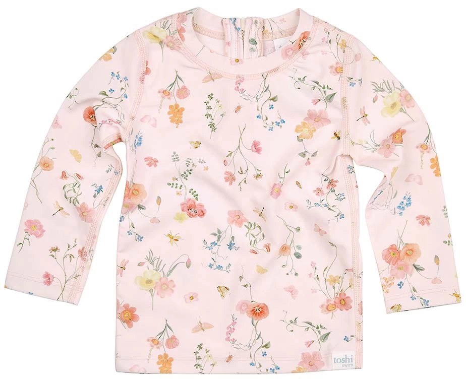 Toshi Swim Rashie Maya features an original and exclusive Toshi print design, a collection of sweet field flowers are presented in a delightfully pretty pink hue.