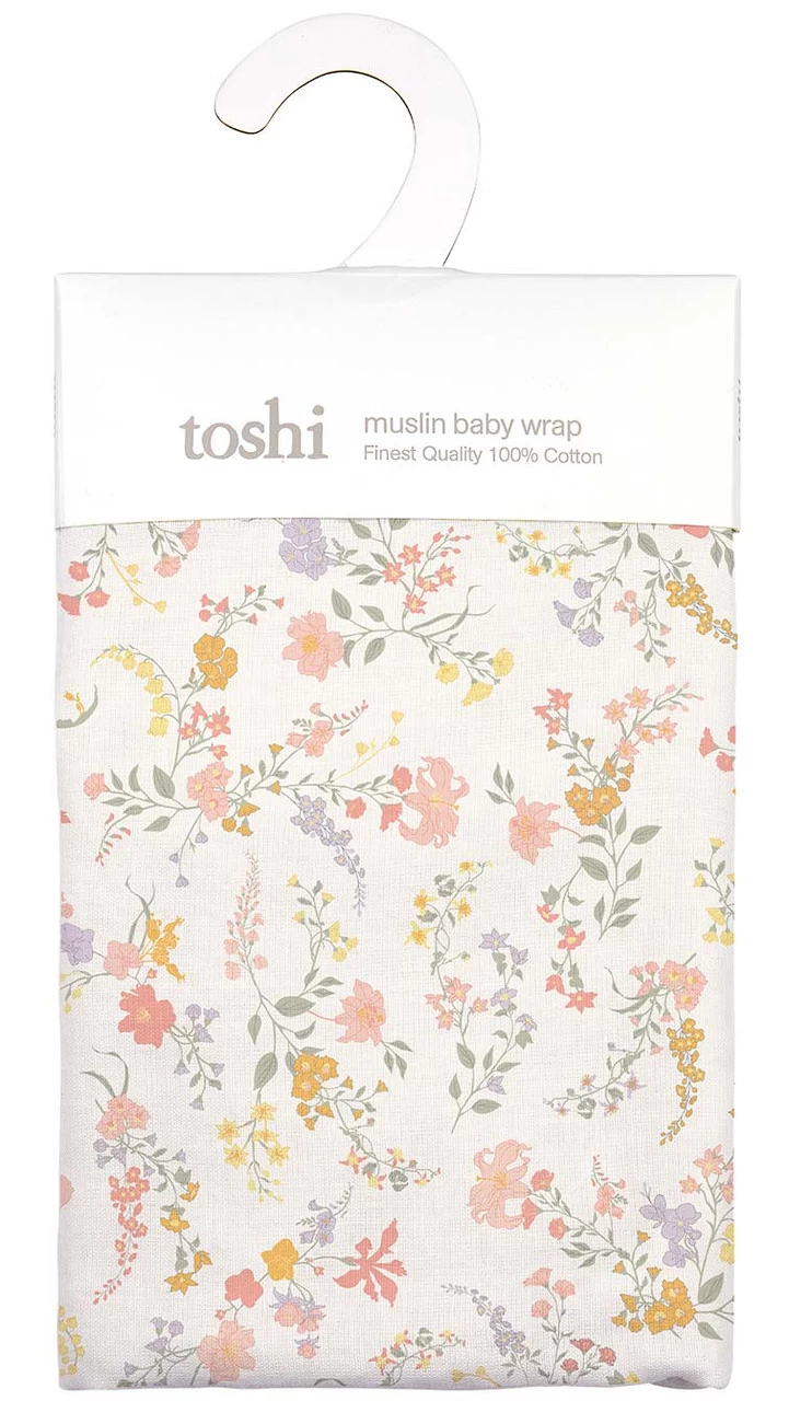 Wrap Muslin Classic Isabelle presents in an original and exclusive Toshi design, featuring delicately hand illustrated fresh spring blossoms.