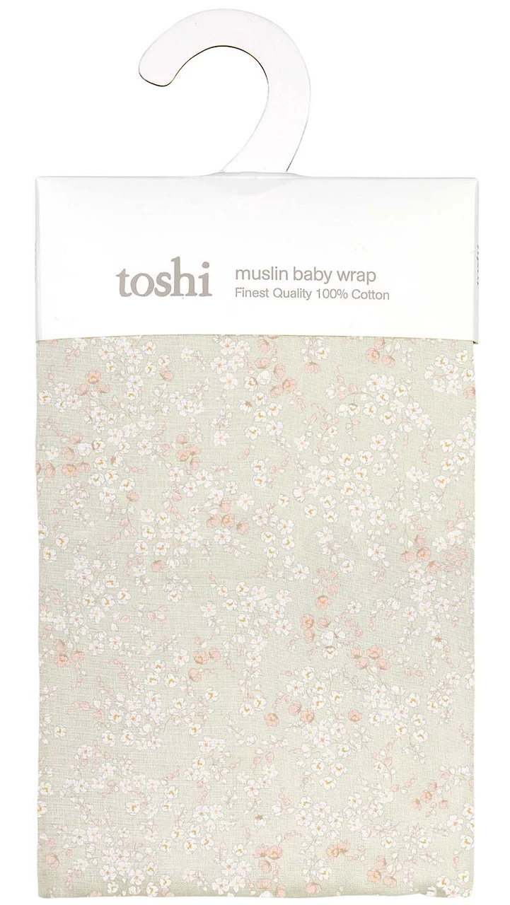 Wrap Muslin Classic Stephanie presents in an original and exclusive Toshi design, featuring delicate and finely illustrated blossoms in a soft green hue.